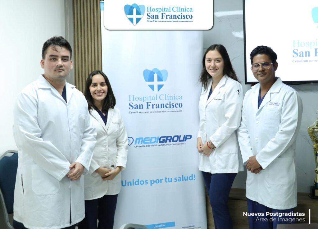 El pasado jueves 12 de marzo, el Hospital Clínica San Francisco formalizó la incorporación de cuatro médicos residentes pertenecientes al programa de Posgrado de Imagenología de la Universidad Internacional del Ecuador (UIDE). Este evento marca la continuidad de los convenios de formación de especialistas que nuestra institución mantiene con la academia.